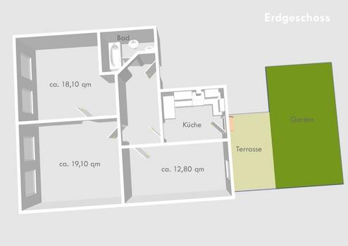- 68 qm, 3 Zimmer, kleine Terrasse, eigener Garten und Abstellkammer (ggf. Keller)