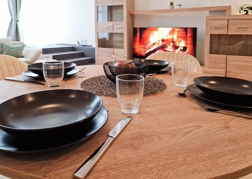 65“ Smart-TV, Geschirr, Bettzeug