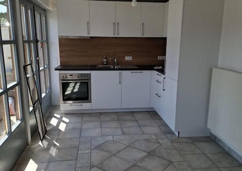 Terrasse, Vollbad, Einbauküche, Fliesen