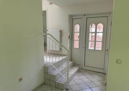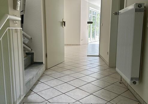 Der Fußboden im EG ist mit hellen Fliesen versehen und im Dachgeschoß