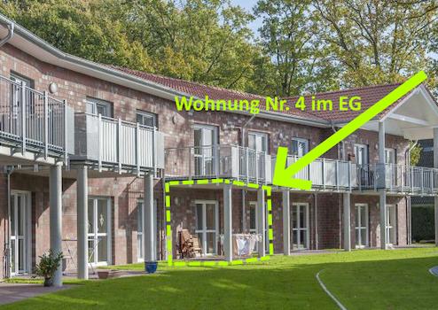 Mieten Sie eine barrierefreie, moderne und helle 2-Zimmer-Erdgeschosswohnung (WE 4) in schöner und zentraler Wohnlage in 21726 Oldendorf, Auf der Kuhlen 5, direkt vom Eigentümer.