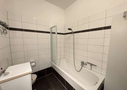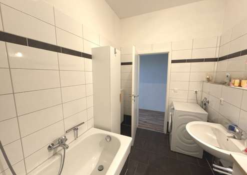 - Badezimmer mit Badewanne und Waschmaschinenanschluss