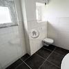 Das ursprüngliche Bad und das Gäste-WC wurden zu einem großen Haupt-Bad zusammengelegt und mit einem hängendem WC, Waschbecken, Deckenspots, 2 Fenstern und sogar einer bodentiefen Dusch ausgestattet. Es ist sehr modern in Weiß und am Boden in Steingrau in Großformat gefliest