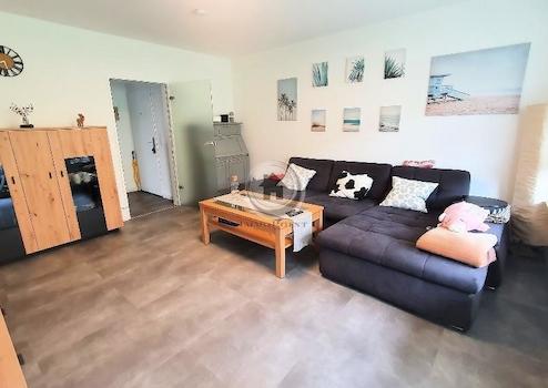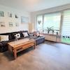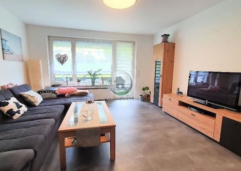 Eins der vielen Highlights ist das helle Wohnzimmer mit großer, tiefer Fensterfront zur sonnigen Süd-Loggia (überdachter Balkon) in Richtung des gepflegten Gartens. Hier entspannen Sie in Ruhe und können sich Sonnen oder Grillen. Die Grünfläche wird von einem Gärtner gepflegt.