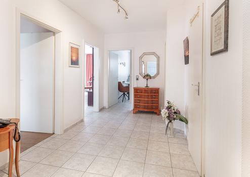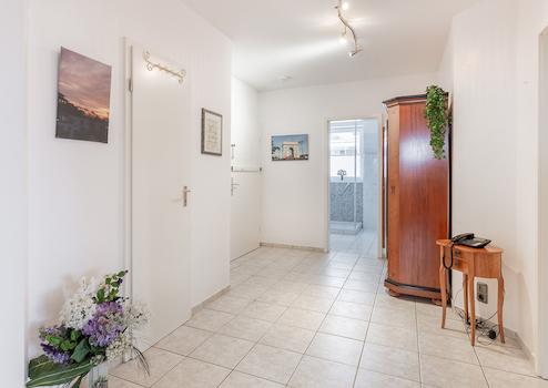 In den Wohnbereichen unterstreichen hochwertige Bodenfliesen den zeitgemäßen Charakter der Wohnung, während die beiden Schlafzimmer mit einem geschmackvollen Designerboden ausgestattet sind und eine angenehme Wohnatmosphäre schaffen.
