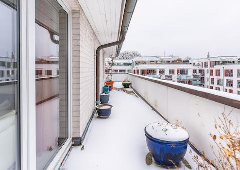 Ein absolutes Highlight ist die großzügige Dachterrasse, die sich nahezu vollständig um die Wohnung herum erstreckt. Sowohl vom Wohnbereich als auch von beiden Schlafzimmern aus zugänglich, eröffnet sie Ihnen einen privaten Rückzugsort unter freiem Himmel. Hier genießen Sie Sonne von morgens bis abends sowie einen unvergleichlichen Blick über Hamburg – ein Ort für Entspannung, Inspiration und besondere Momente.
