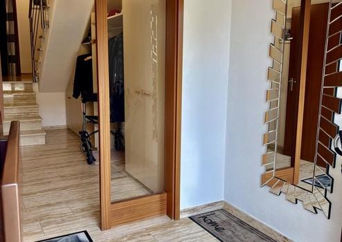 Im Eingangsbereich befindet sich eine maßgefertigte, hochwertige Garderobe in klassischem Design, die den Raum optimal nutzt und in gutem Zustand ist.
