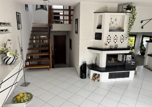 Die obere Wohnung ist mit einem schönen, geschlossenen Kamin ausgestattet.