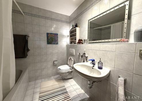 * Badezimmer mit Badewanne und Waschmaschinenanschluss