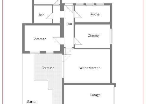 Die zur Wohnung gehörende Terrasse mit kleinem Gartenanteil erweitert die nutzbare Fläche und bietet Platz für Aufenthalt im Freien sowie individuelle Gestaltungsmöglichkeiten.