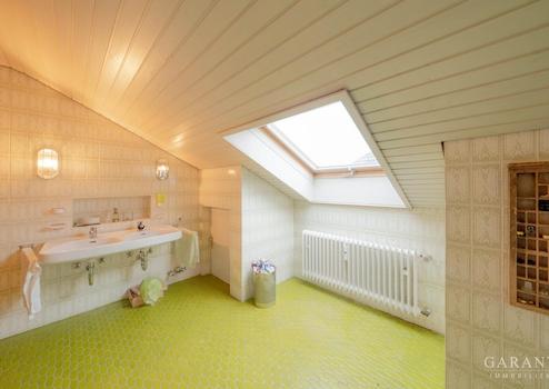 Das Tageslichtbad ist funktional ausgestattet mit Badewanne, separater Dusche, Doppelwaschbecken und Fenster, befindet sich jedoch ebenfalls im renovierungsbedürftigen Zustand. In den Wohnräumen ist Parkett verlegt, Küche und Sanitärbereiche sind gefliest.