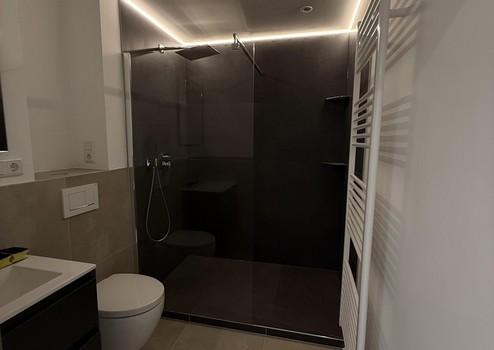 Das Badezimmer ist vollständig neu gestaltet und verfügt über eine moderne, begehbare Dusche. Zusätzlich sind im Bad sowie im Flur elegante LED-Spots verbaut.