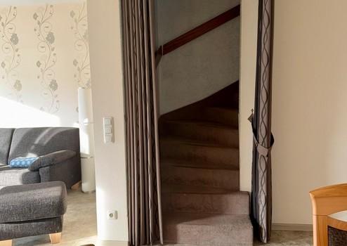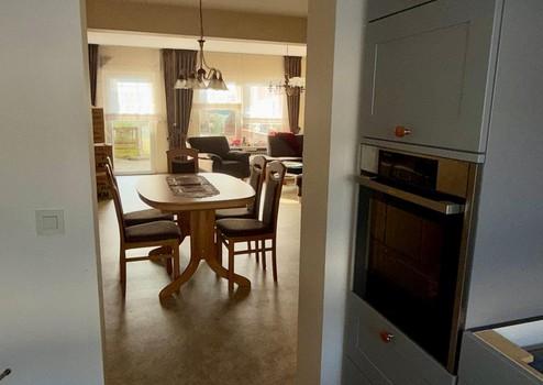 Im Erdgeschoss befinden sich der Wohn- und Essbereich, die Küche sowie ein separates Gäste-WC. Die aktuell vorhandene Küche ist lediglich aufgestellt und nicht fest montiert – sie kann auf Wunsch übernommen werden.