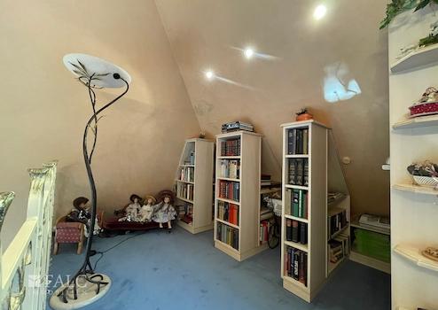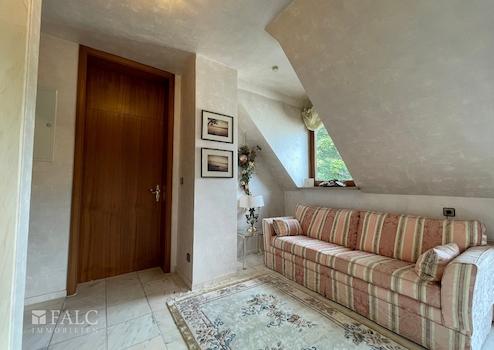 Auf der oberen Etage erwartet Sie ein Schlafzimmer mit eigenem Badezimmer, das idealen Komfort garantiert. Ein weiterer Schlafbereich mit eigenem Duschbad bietet Flexibilität für Gäste oder Familienmitglieder. Die Galerie dieser Ebene dient als vielseitiger Bereich, der sich hervorragend als Lese- oder Arbeitsraum nutzen lässt.