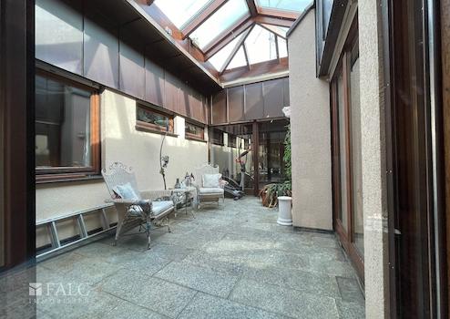 Der Wintergarten ist ein weiteres Highlight: Vollständig überdacht, bietet er die Möglichkeit, als Fitnessraum oder einfach als entspannter Rückzugsort zu dienen.