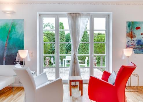 Das etwa 600 m² große Grundstück rundet das Gesamtbild ab: ein Garten, der Rückzugsort und Bühne zugleich sein kann – für private Momente im Grünen ebenso wie für stilvolle Empfänge.