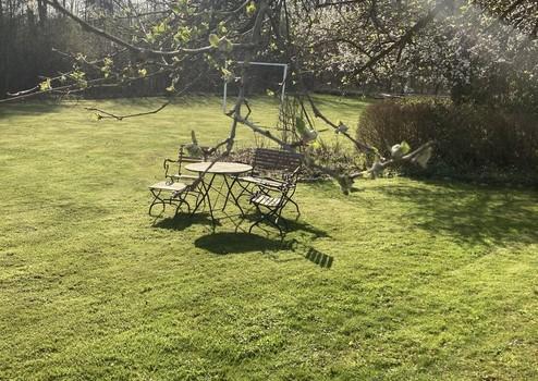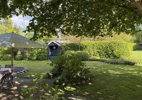 Genießen Sie entspannte Stunden im knapp 4000 qm großen und vollständig eingewachsenen eigenen parkähnlichen Garten mit zwei Terrassen, zwei kleinen Wäldchen, einer kleinen Laube und einem Shelter, der weitere idyllische Übernachtungsmöglichkeiten am Lagerfeuer bietet.