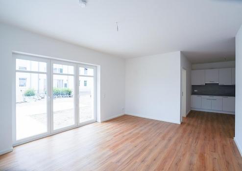 Zu vermieten ist eine ca. 96m² große Neubauwohnung im ersten Obergeschoss mit 3 Schlafzimmern, 1 offener Wohn- und Essbereich (ohne EBK), 1 Tageslichtbad mit ebenerdiger Dusche, 1 Gäste-WC, 1 großzügiger Balkon, 1 ca. 8m² großer Kellerraum sowie 1 Autostellplatz.