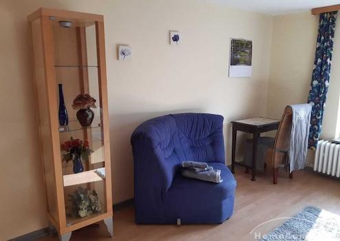 3 Zi.Whg., möbliert, 1. OG. 1 DZ, 2 EZ. Miete 1350,- Euro für 3 Pers., Aufpreis für 1 weitere Person. Nur für Nichtraucher.