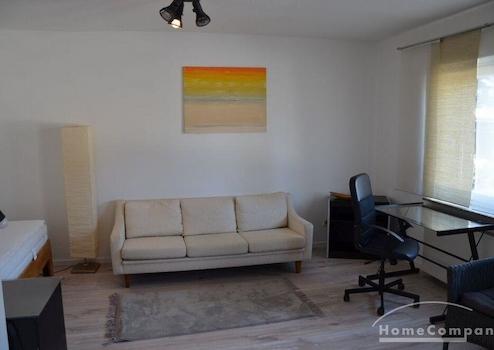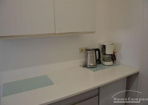 1 Zi.Whg., möbl., Hochparterre. Mit Küchenzeile. Nur für Wochenendheimfahrer. Miete 560,- € inkl. NK, Hzg.; zuzügl. Strom nach Verbrauch (30,- Vorauszahlung). 14-tägige Reinigung nach Absprache und gegen Aufpreis möglich. Nur für Nichtraucher. Es gibt keine Waschmaschine. Reinigungskosten bei Auszug 150,- €.