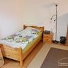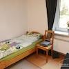 Schlafzimmer mit 2 Einzelbetten 90x200 cm, Tisch mit Stuhl, Garderobenständer, Schrank.