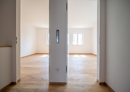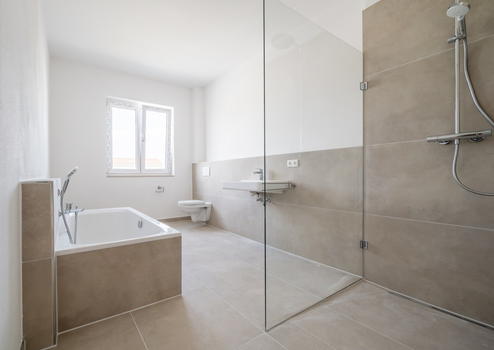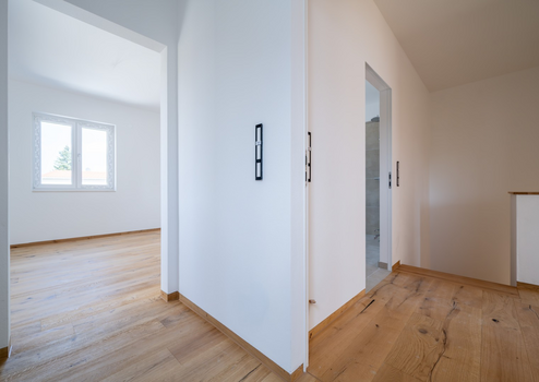 Der offen gestaltete Wohn-/Essbereich bildet das Herzstück des Hauses und öffnet sich zur Terrasse – ideal für entspannte Stunden und gesellige Abende. Große Fensterflächen sorgen für viel Tageslicht, während die 3-fach Verglasung und der KfW-55-Standard hervorragende Energieeffizienz gewährleisten. Die Fußbodenheizung schafft ein angenehmes Wohnklima in allen Jahreszeiten. Die stilvollen Bäder überzeugen mit ausgewählten Materialien und Marken-Armaturen. Eine Videosprechanlage sowie elektrische Rollläden erhöhen Komfort und Sicherheit. Die Luftwärmepumpe liefert moderne, ressourcenschonende Haustechnik.