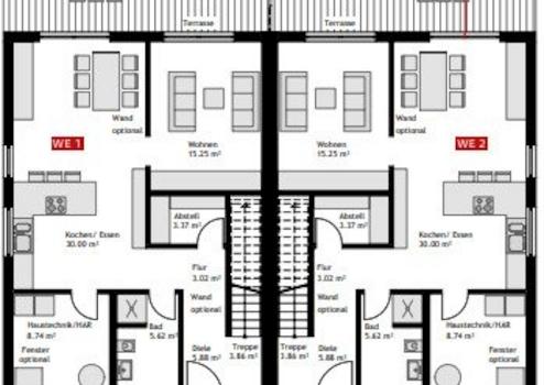Sie haben die Wahl zwischen vier verschiedenen Ausbaustufen. Die STREIF-Standard-Ausbaustufe ist Fast-Fertig Plus, während die gewählte Ausbaustufe 4 - Schlüsselfertig einen Preis ab 381.371 EUR bietet. In dieser Ausbaustufe sind alle Leistungen enthalten, die Ihnen eine zeitsparende und stressfreie Bauweise ermöglichen. Darüber hinaus können Sie bis zu 100.000 EUR zinsgünstiges Darlehen je Wohneinheit beantragen, um den Klimafreundlichen Neubau zu unterstützen. Gegen Aufpreis bieten wir eine Ökobilanzierung an, und bei Erfüllung der Anforderungen für das Qualitätssiegel Nachhaltiges Gebäude Plus kann der Kreditbetrag auf 150.000 EUR je Wohneinheit erhöht werden.