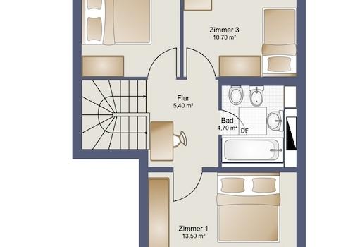 Über eine elegante, innenliegende Treppe gelangen Sie in das Dachgeschoss. Hier stehen drei flexibel nutzbare Zimmer zur Verfügung – ideal als Kinder-, Arbeits- oder Gästezimmer. Das großzügigere Schlafzimmer verfügt über einen eigenen Nordbalkon mit freiem Blick über die Dächer von Pankow und unterstreicht den besonderen Maisonette-Charakter dieser Wohnung. Ein Badezimmer sowie ein kleiner, integrierter Arbeitsbereich im Flur runden das Raumangebot auf dieser Ebene ab.