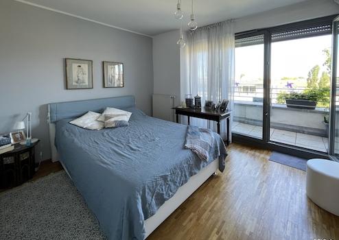 Zwei Balkone erweitern den Wohnraum ins Freie: Der großzügige Südbalkon mit Ausrichtung zum ruhigen, begrünten Innenhof bietet ideale Voraussetzungen für entspannte Stunden im Freien. Der kleinere Nordbalkon eröffnet einen freien Blick über die Umgebung und unterstreicht den besonderen Maisonette-Charakter der Wohnung.