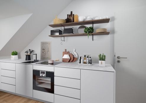 Die Wohnung enthält keine Küche - Die Küche ist zu Veranschaulichungszwecken digital auf den Fotos zu sehen.