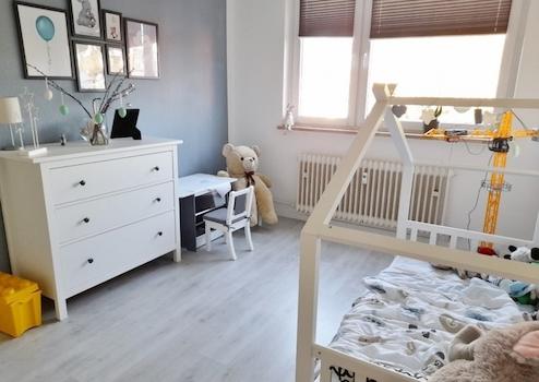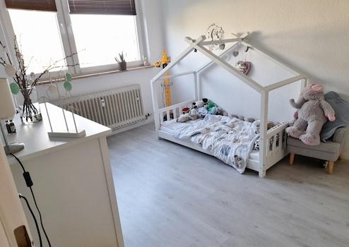 Das angrenzende Kinderzimmer befindet sich zur nördlich ausgerichteten Seite und sorgt somit auch an heißen Tagen für einen erholsamen Schlaf.