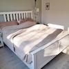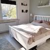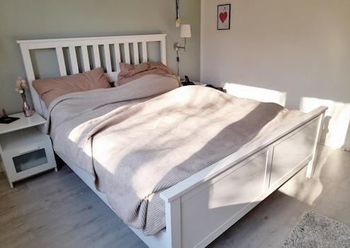 Das Schlafzimmer bietet genügend Platz für ein Doppelbett und Kleiderschrank.