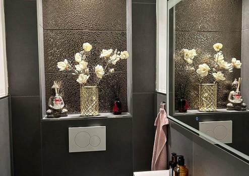 - Kinderbadezimmer mit bodengleich gefliester Dusche