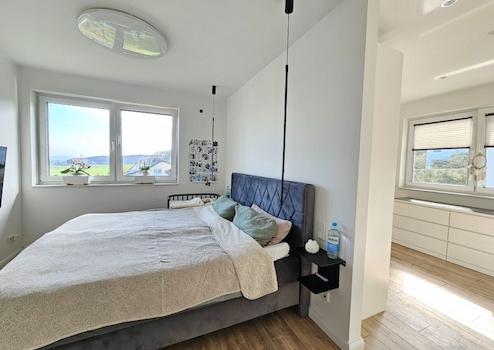 Im Erdgeschoss überzeugt der offene Grundriss mit bodentiefen Fenstern, die viel Tageslicht hineinlassen. Der weitläufige Wohnbereich mit Kaminofen bildet gemeinsam mit der offenen Einbauküche und dem Essbereich das Herzstück des Hauses - ideal als Treffpunkt für die ganze Familie. Ergänzt wird diese Ebene durch ein Gästezimmer, ein Tageslichtbad mit Dusche sowie einen Hauswirtschaftsraum.