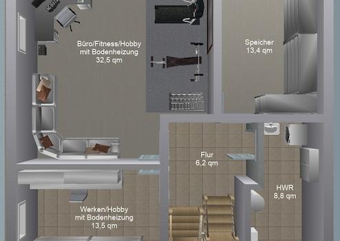 - Fitnessraum im Keller mit Bodenheizung in Wohnraumqualität