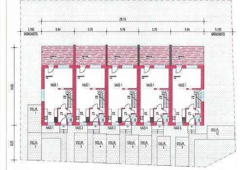 Angeboten wird ein Reihenmittelhaus in dieser großzügige Reihenhausanlage mit 5 Häusern, jedes Haus verfügt über 160 qm Wohnfläche und 48 qm Nutzfläche. Im Kellergeschoß ist der Technikraum untergebracht, sowie ein Großer Hobbyraum. Das Erdgeschoß besticht durch eine offene Bauweise. Eine zum Esszimmer offen Küche und ein Großes Wohnzimmer laden zum verweilen ein. Über die Terrasse gelangt man in den eigenen Garten. Im Obergeschoss befindet sich das Bad und 2 Kinderzimmer, sowie ein Elternschlafzimmer, ein großer Balkon rundet das Bild im Obergeschoss ab. Das Dachgeschoss könnte ein weiteres Schlafzimmer oder ein Büro beherbergen, auch für ein Badezimmer ist noch platz. Es könnten aber auch 2 weitere Kinderzimmer im Dachgeschoß untergebracht werden. Die Raumaufteilung kann noch auf Ihre Bedürfnisse angepasst werden. Ausstattung: Massive Ausführung, Keller in Stahlbeton, Dreifachverglaste Fenster, Rollläden Elektrisch.