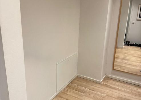 Die Wohnung wird über das Treppenhaus erreicht und ist dank der Süd-Westausrichtung sehr hell. Nach Durchschreiten der Eingangstüre befinden Sie sich im Flur mit einer praktischen Fläche für eine Garderobe oder einen Schrank als auch einem separaten Abstellraum.