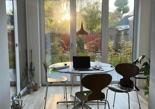 Das Haus liegt in zentraler Lage und Anbindung über die S5. Die Wohnung ist jedoch vollkommen still zur entgegen gesetzen Richtung nach Süden auf der Rückseite. Kein Wohnraumfenster geht zur Straße.