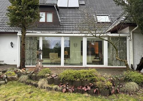 Es ist voll unterkellert, verfügt über eine innenliegende geräumige Garage, einen Wintergarten, der über das Wohnzimmer begehbar ist und einem verglasten Haupteingangsbereich, sowie einem voll ausgebauten Dachgeschoss.