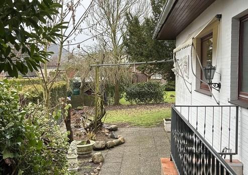 Es steht auf einem 737m² großen Grundstück mit separater Auffahrt, dazu mehreren Parkplätzen und einer Terrasse direkt vor der Haustür. Der pflegeleichte Garten hinterm Haus mit einer zweiten Terrasse, bietet Platz für Freizeit, Spiel und Entspannung. Das Haus hat eine konventionelle Bauweise. Großzügige Wohn- und Schlafräume mit großen