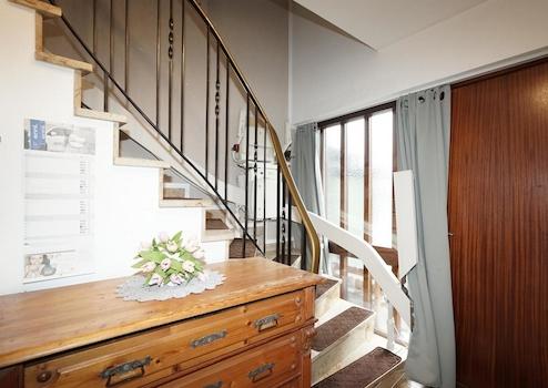 Im Obergeschoss erreicht man von einem hellen, langen Flur verschiedene Räume.