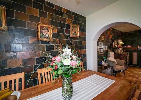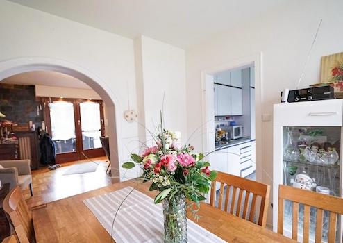 Vom Wohnzimmer geht man direkt ins angrenzende Esszimmer und davon weiter in die Küche. Die Aufteilung ist gut durchdacht.