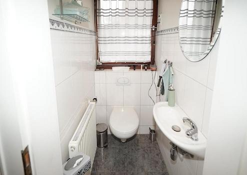 G-WC unten : ebenfalls nach 2010 saniert, Leitungen, Fliesen & Keramik