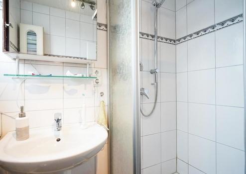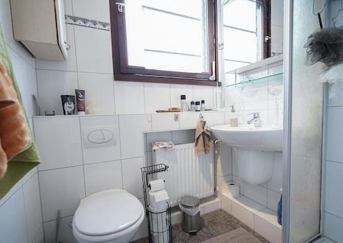 Im OG neue Strom-und Wasserleitungen, großes Velux Fenster, Wandfliesen, Duschkabine.