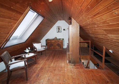 Über eine Ausziehleiter gelangt man in den Spitzboden in ein großes Zimmer,dieses zählt zur Nutzfläche.