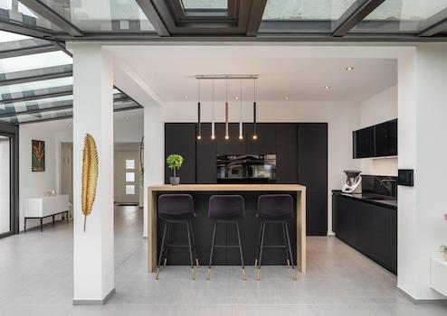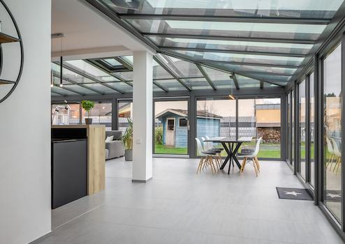 oOffener Wohn-, Ess- und Kochbereich mit Wintergarten
