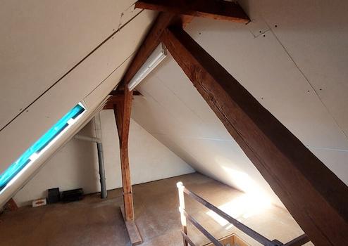 - Speicher von Innen mit Steinwolle gedämmt, Dampfsperrfolie angebracht und mit Rigips