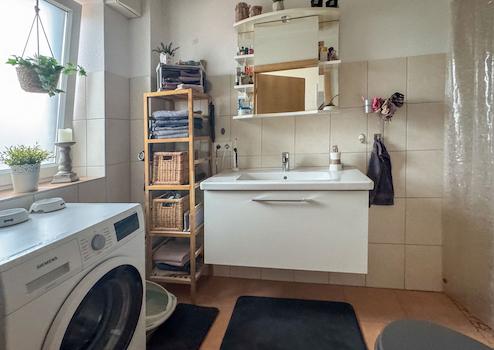 Insgesamt befinden sich nur 4 Wohnungen in dem Haus, das auf einem insgesamt 1.117 m² großen Grundstück erbaut wurde. Wohnung Nr. 2 im EG hat auf rund 86 m² Wohnfläche einen Wohn-Essbereich, 3 weitere Zimmer (Schlafen, Kinder, Gäste, Büro...) ein Bad, einen Flur sowie einen Abstellraum. Außerdem gibt es einen weiteren Abstellraum im Außenbereich, der über die zur Wohnung gehörende Terrasse zu erreichen ist. Heizung und Warmwasser kommen von einer Gaszentralheizung (Bj. 2007) mit Solarunterstützung. 1 Pkw-Stellplatz. Aktuell beträgt die Kaltmiete 6.600,00 Euro/Jahr.