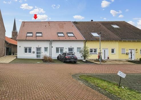 Dieses neuwertige, teilweise barrierefreie Reihenhaus aus dem Baujahr 2012 überzeugt durch eine hochwertige Bauausführung, eine hervorragende Energieeffizienz (nachgewiesen durch einen aktuellen Bedarfsausweis, erstellt von einem örtlichen Energieberater) sowie durch eine zentrale und dennoch ruhige Lage. Das Haus befindet sich am Ende einer kleinen Stichstraße hinter einem denkmalgeschützten Vierkanthof in sonniger Südlage – mit Blick auf die Kirche.