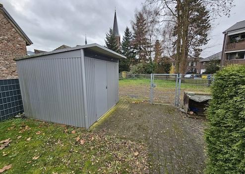 Der Garten verfügt über ein Biohort-Gartenhaus, ein Gartentor sowie eine separate Zufahrt zu einem öffentlichen Weg. Die Entwässerung des Niederschlagswassers erfolgt über eine eigene Rigole. Direkt vor dem Haus befindet sich ein Stellplatz, ein weiterer Stellplatz sowie die Garage in unmittelbarer Nähe. Zusätzliche Nutzungsmöglichkeit: Abstellplatz für Wohnmobil oder Caravan im hinteren Grundstücksbereich